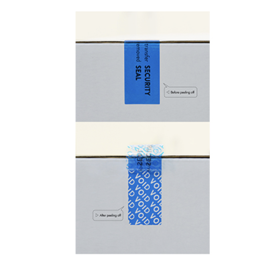 Tam transfer OPEN VOID, sahteciliğe karşı, kendinden yapışkanlı güvenlik etiketi.